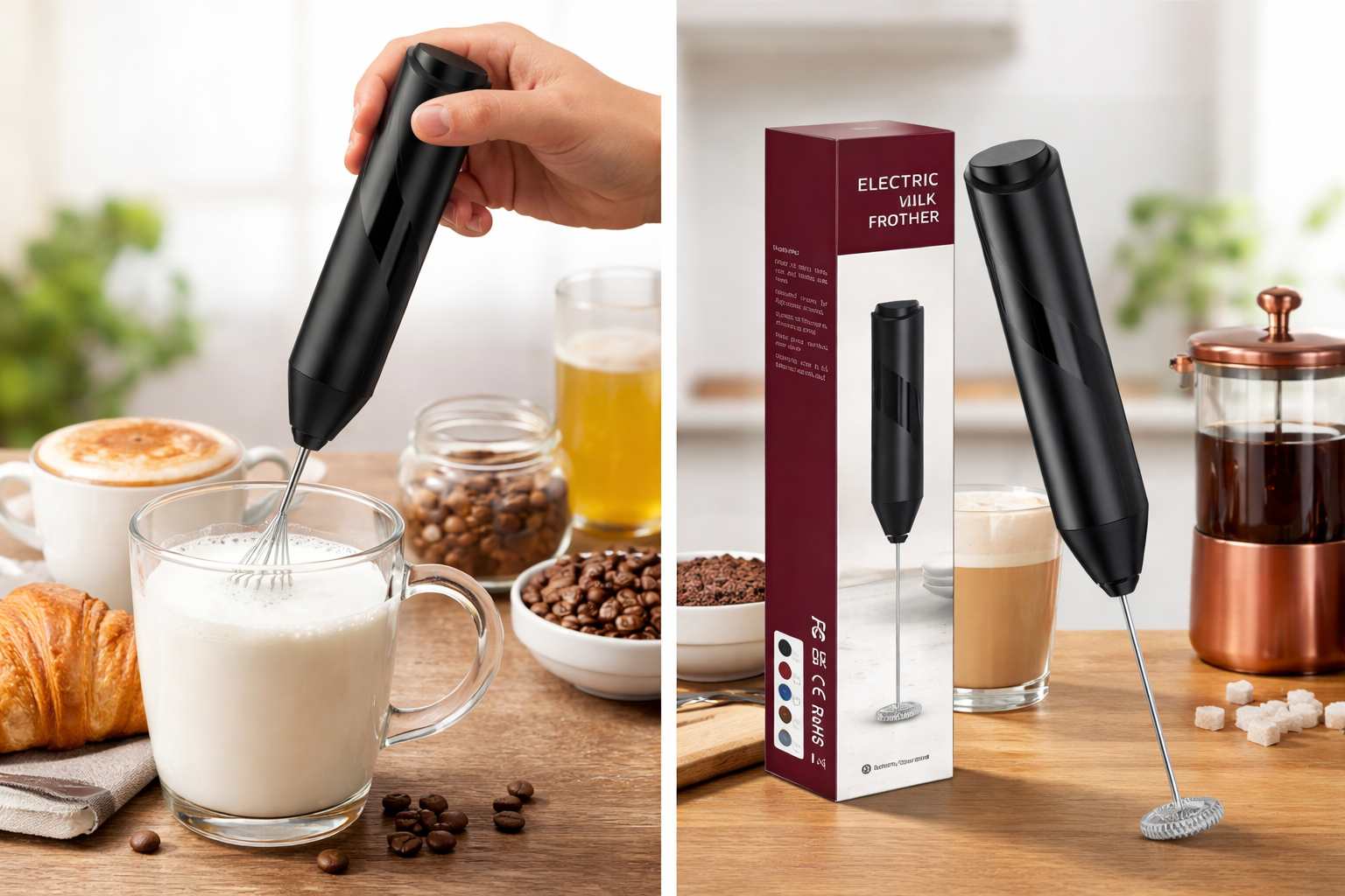 Create cafe style drinks at home with this Electric Milk Frother ,a powerful and easy to use tool designed to give you rich creamy foam in seconds. Whether you love cappuccino, latte, macchiato, hot chocolate, or iced coffee, this handheld milk frother helps you achieve professional results effortlessly.
